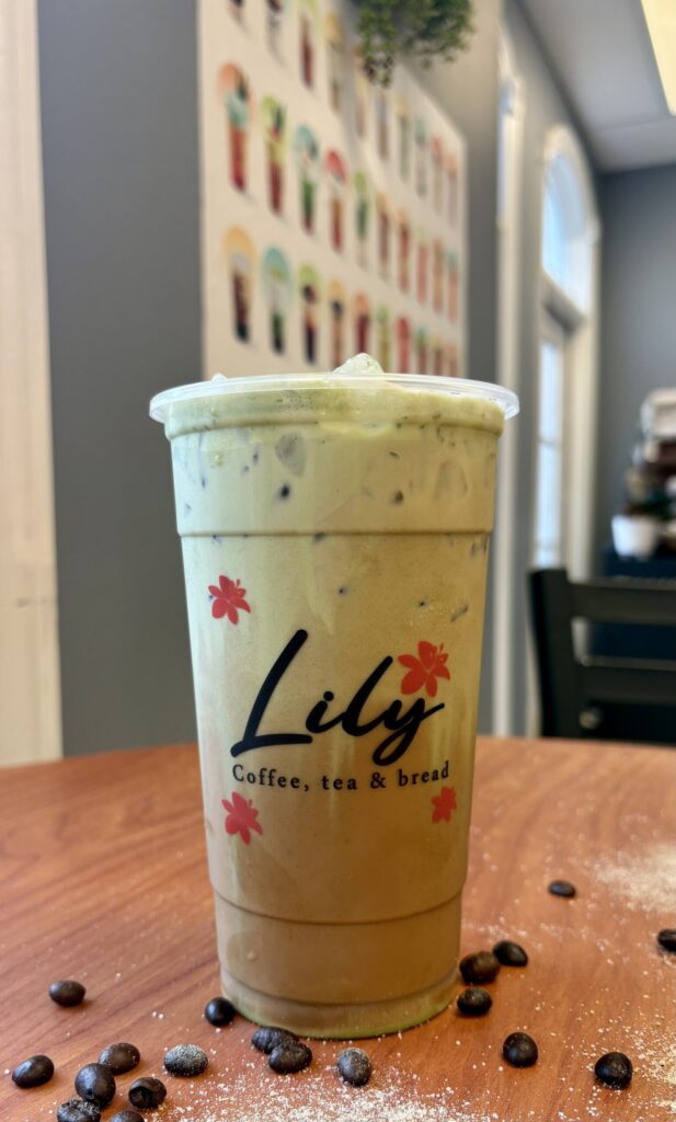 White coffee topped with Matcha